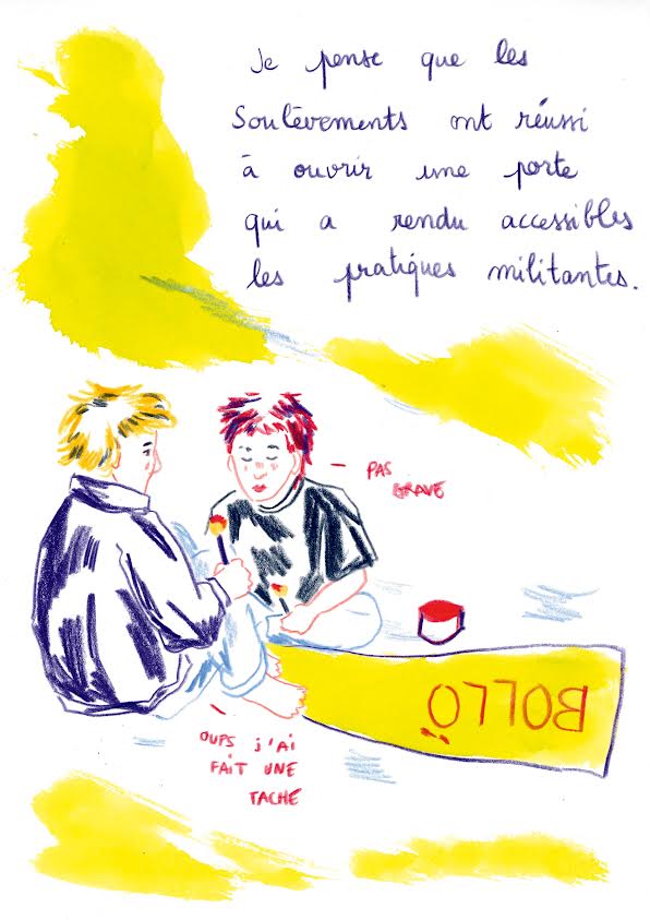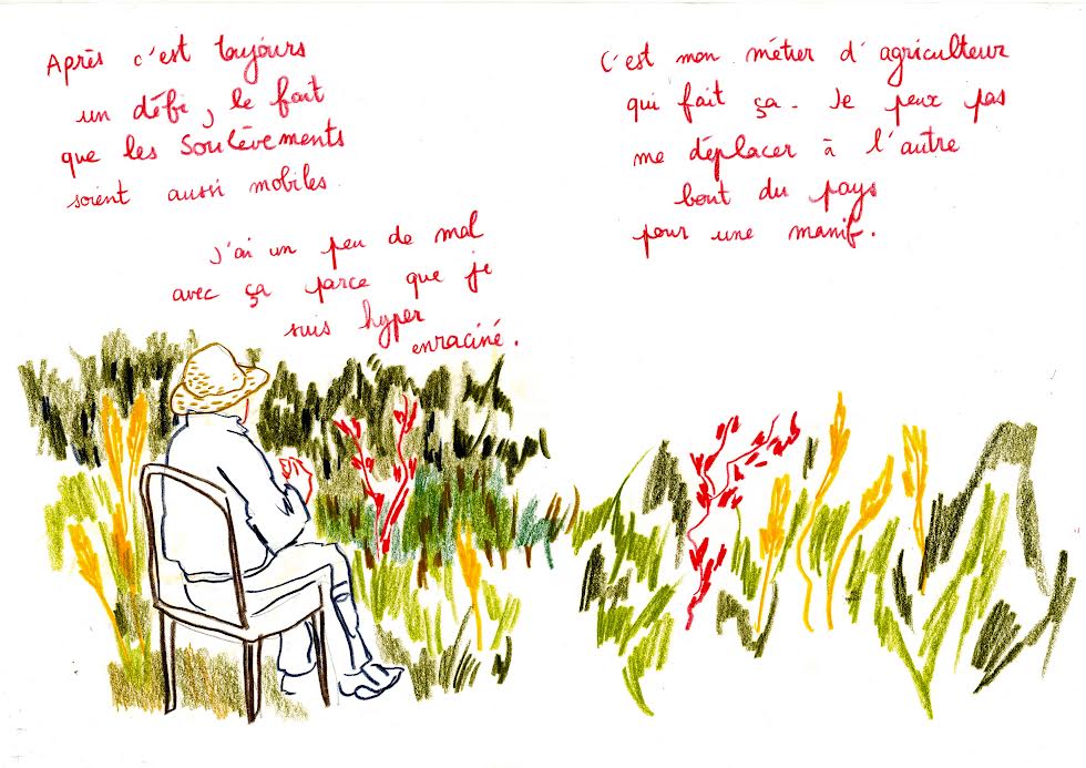 Étudiant en 5ème année Arts Visuels pour le Journalisme à l’EESAB de Lorient, je crée des formes documentaires qui allient le dessin et l’enquête de terrain, de manière pédagogique et souvent humoristique. Je croise l’image et le texte dans des formes éditoriales : fanzines, bande dessinées, mini-éditions, etc. J’ai réalisé l’an dernier une enquête dessinée sur le collectif écologiste Stop Thalasso, Ce récit dessiné donne la parole à des personnes qui questionnent l’articulation entre nos différences et nos complémentarités dans les collectifs locaux, à partir de la volonté de penser un avenir collectif, de se projeter dans un territoire, et de cultiver la solidarité.